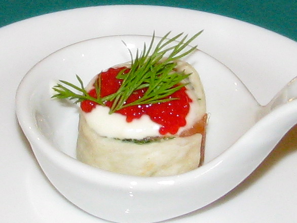 Amuse Bouche de Salmon Roulé avec du Caviar