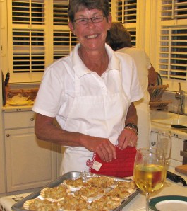 As part of a charity event, a group of us offered a “Julia Child Night” for 10 people. It was purchased at arguably one-half its true value by another group of friends. The kitchen staff somehow managed to serve the meal and nibble and imbibe at the same time. I am not sure who had a better time. In any case, 16 bottles of wine were consumed in a flash.