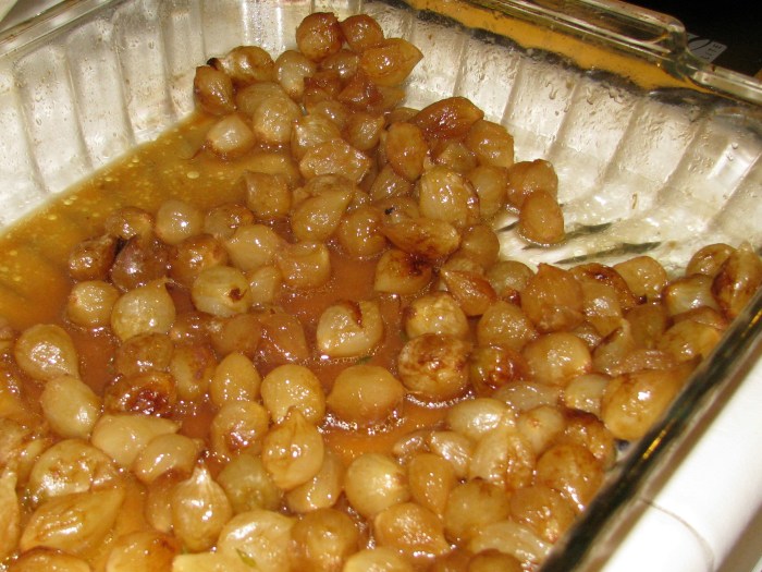 2. Defrost the pearl onions and brown over medium high heat in 2 tbsp. of butter and one tbsp. of olive oil – about 8 minutes.   Put onto a baking sheet and bake in the oven for 30 minutes.  Set aside when finished.