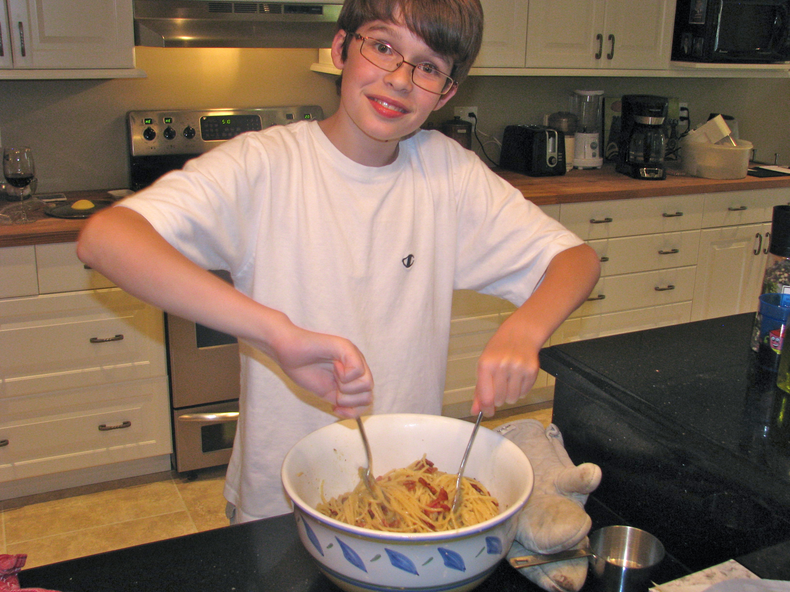 Peas: This is a common addition to Carbonara. If you have frozen peas, throw them in with the pasta about halfway through cooking. Normally, you will cook the pasta 6-7 minutes, so add the peas for the last three minutes. This gives a great color to the dish and gives the kids their veggies.