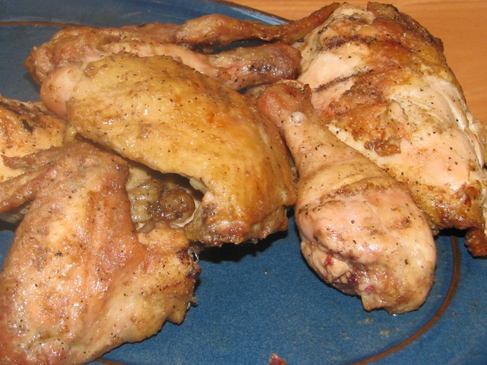 I suggest that you keep this recipe to yourself – it is so simple that it is almost silly. Tell everyone that it is very complicated – good grief, you have to marinate the chicken overnight. It’s an old family tradition, and someday you’ll give them a copy, but you really don’t have time to write the whole thing down now.