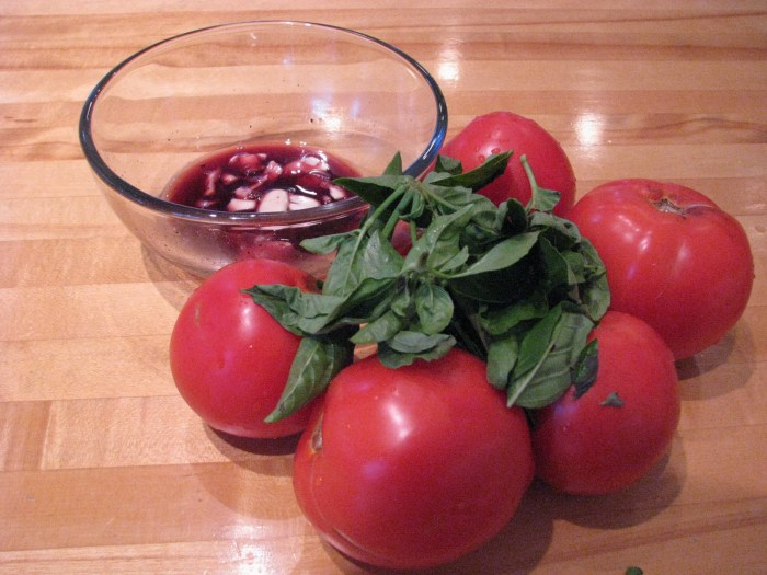 I think you will really like the following recipes for a terrific tomato olive tapenade, which can be served as an appetizer, and a garlic tomato salad that, assuming you get off your duff and make it, will become one of your all-time favorites.
