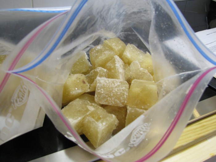 - Put frozen cubes in large ziplock bags and keep in the freezer.