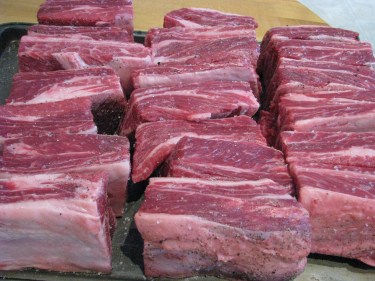 • 10 short ribs of beef – ask you butcher to cut and trim them if they are not already prepared that way.  They should look like this:
