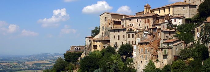 Umbria is a region in Italy located between Rome and Florence, just south of Tuscany. It is filled with mountainous hills which rise up over 1,000 meters. Many of the hilltops have towns and villages on them which date from pre-Roman times. The hilltop towns provided very strong defense while allowing the residents to down into the valleys during the day to tend their fields. The Romans conquered all of the area and made these towns bigger and stronger, building temples to their gods and adding many public buildings. In the Middle Ages during the era of cathedral building, the last remnants of Roman ruins were cleared away and many beautiful churches and cathedrals were built in these towns. The Renaissance brought even further enhancement. There are probably over 50 of these hilltop towns dotting the Umbrian countryside and they are very cool.
