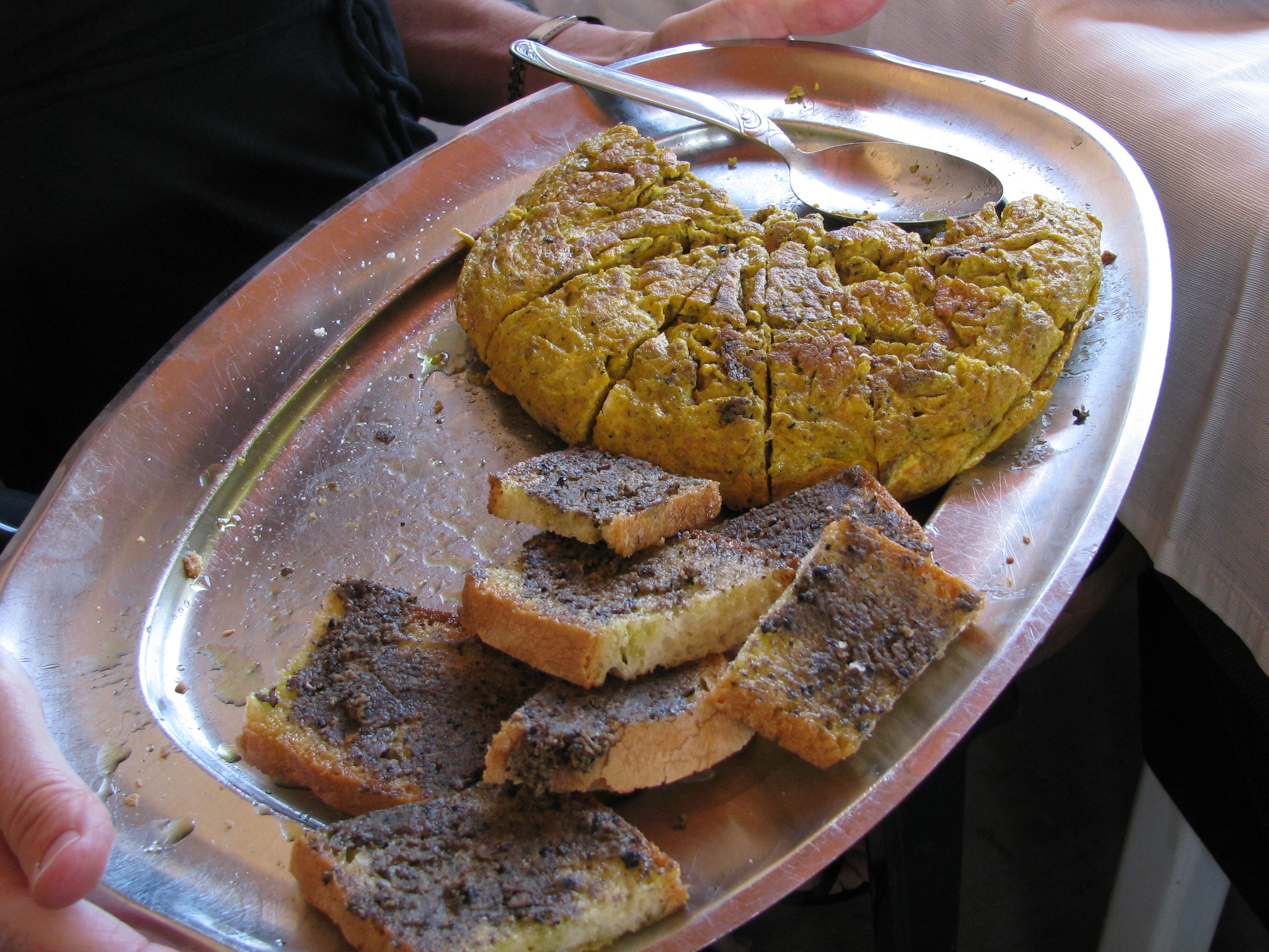 4. Truffle and egg souffle with toasted garlic and truffle bread: Umbria is the region of truffles (tartufo) and they are included in most of the cuisine. The flavor of the truffle exploded in your mouth with each taste. The bread was toasted and rubbed with garlic before the truffle paste was added. I think I passed out for a few seconds in a swoon of ecstasy.