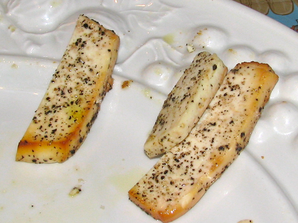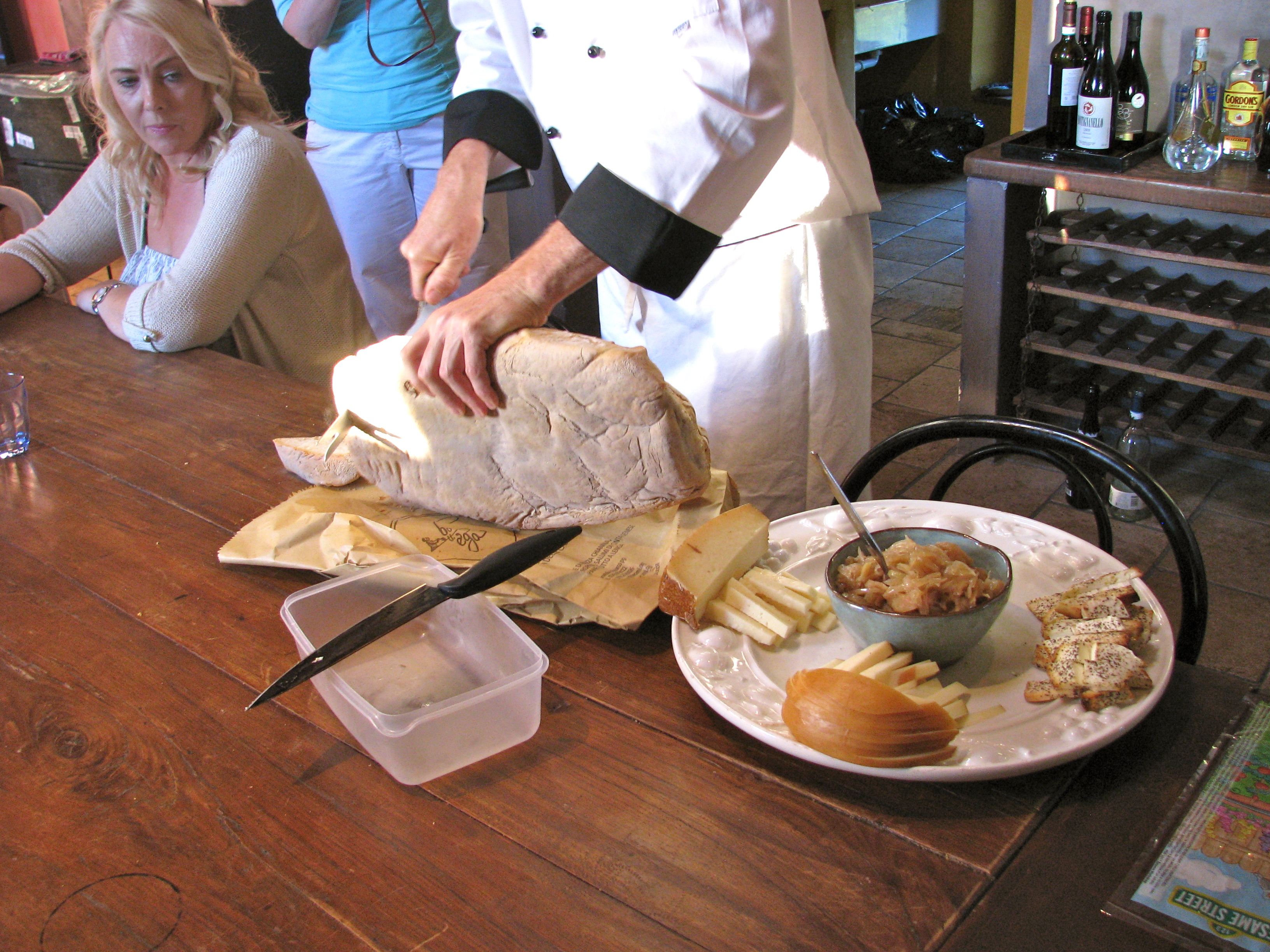 The team brought a huge rustic sourdough bread, aged provalone, baked ricotta with truffles, local sheepsmilk cheese (pecorino), and a eggplant and onion chutney. As we dug in, a few things became clear. First, we don’t eat enough aged provalone and pecorino and that needs to stop – these are really good cheeses so let’s get some next time we’re out. Secondly, who would have thought to shave truffles on top of ricotta and then bake it. Wow, this was really good. Finally, these guys use eggplant everywhere and it is always surprisingly good. For their chutney, they peeled and sliced the eggplant very thin, diced the slices and sauteed with onion. They mixed in slices of pickled ginger to finish it off. Slather this combination on rustic sourdough and you have a treat.