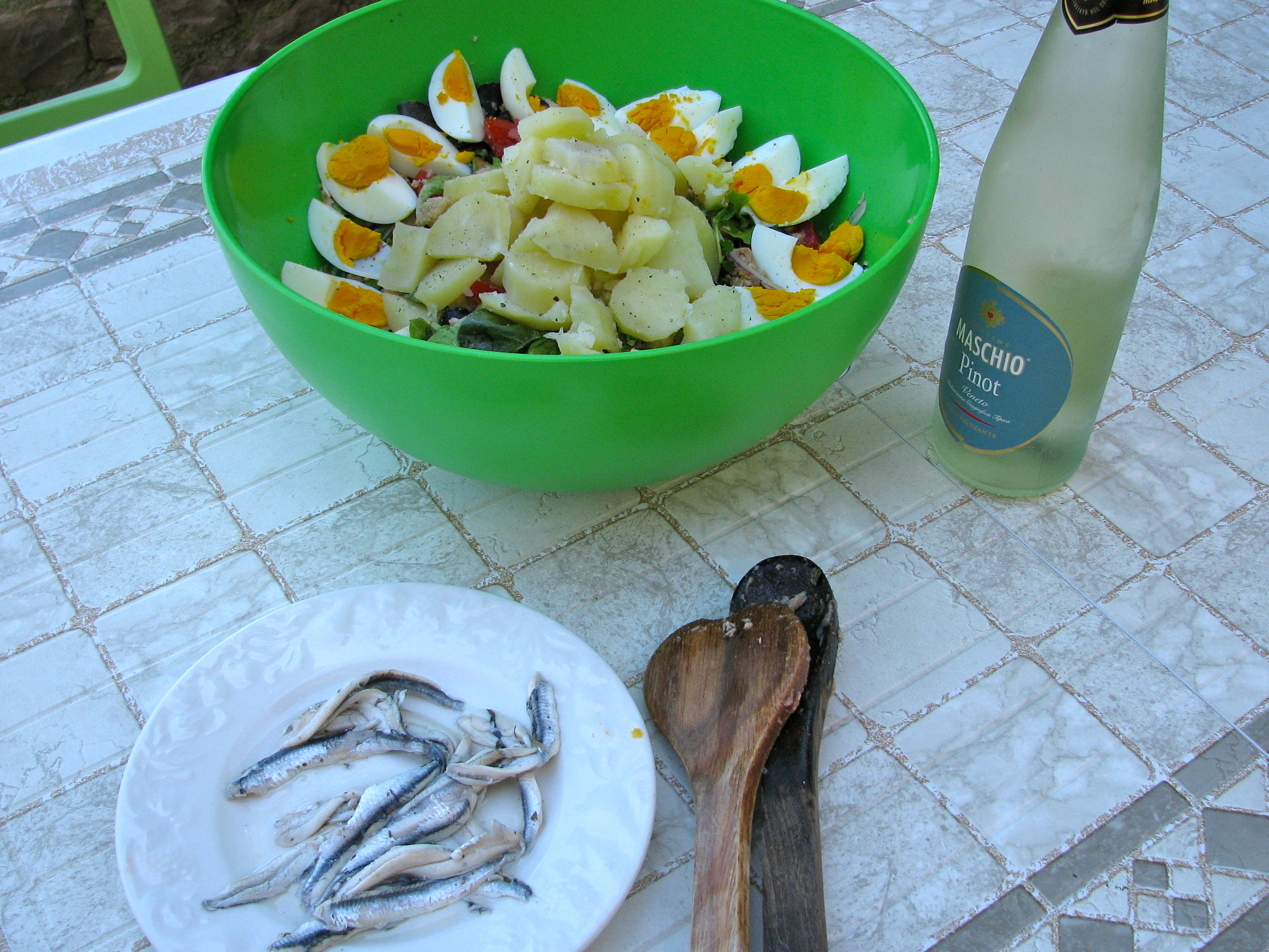 On our recent trip to rural Umbria, we made either a Caprese or Niçoise salad almost every day and enjoyed them al fresco. At first, I was a little nervous eating a French dish in Italy, but then I remembered that Nice was part of the Itailian City States for more years than it has been French.