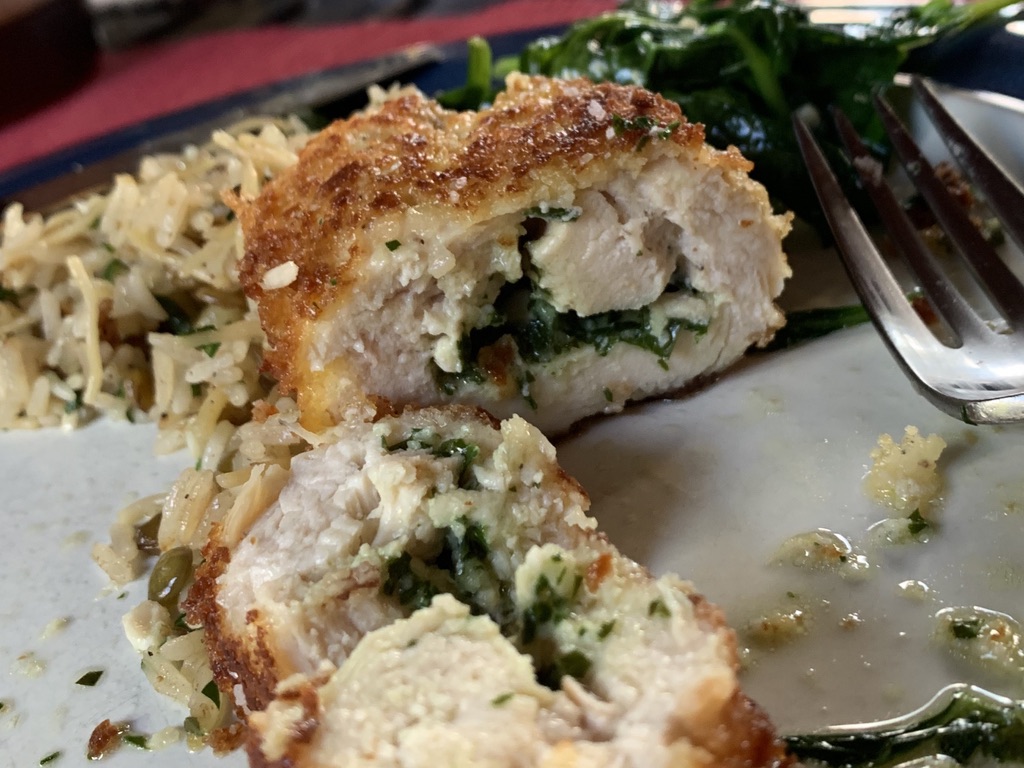 Serve with a rice pilaf or potato and a green vegetable. The real joy of the dish is when you cut the rolled breast open and see the butter mixture ooze out.