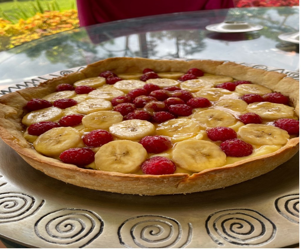 The most common topping for tartes is fruit. Berries, kiwis, and bananas are very popular. There are no rules here, so do whatever turns you on. We like to do symmetrical designs with a variety of fruits; others like to cover the top with one type of fruit. One of the neophytes in our Baking Club came up with a raspberry stuffed with a blueberry. Bananas are surprisingly good. Anything goes.