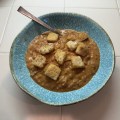 Madras Style Creamy Tomato Lentil Soup w/Garlic Croutons